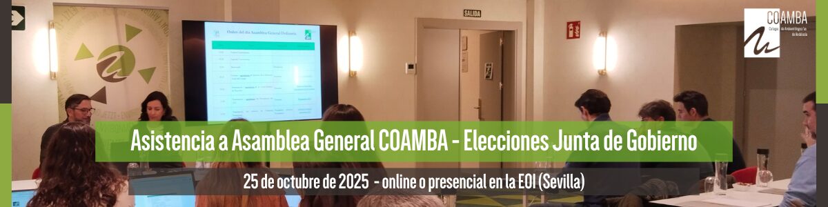 El próximo 25 de octubre de 2025 a las 10:30h en primera convocatoria se realizarán elecciones para elegir nueva Junta de Gobierno de COAMBA en la sede de EOI Escuela de Organización Industrial – Escuela de negocios en calle Leonardo da Vinci, 41092 Sevilla, por lo que convocamos la Asamblea General para celebrar dichas elecciones.