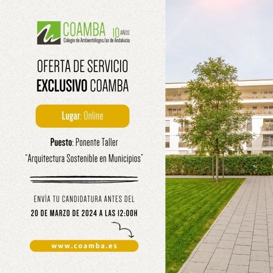Oferta de servicio para exclusivo colegiados/as 2024_14: Ponente Taller: Arquitectura Sostenible en Municipios