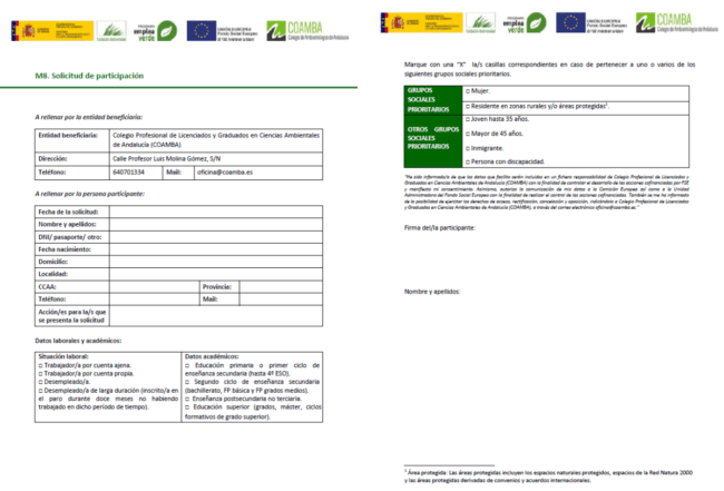 Para cumplimentar esta Solicitud de participación (M8), debes rellenar todos los datos que se piden y marcar con X lo que proceda. Es importante que en «Acción/es para la/s que se presenta la solicitud» se indique UNA de estas dos opciones, según donde se vaya a llevar a cabo la sesión presencial: