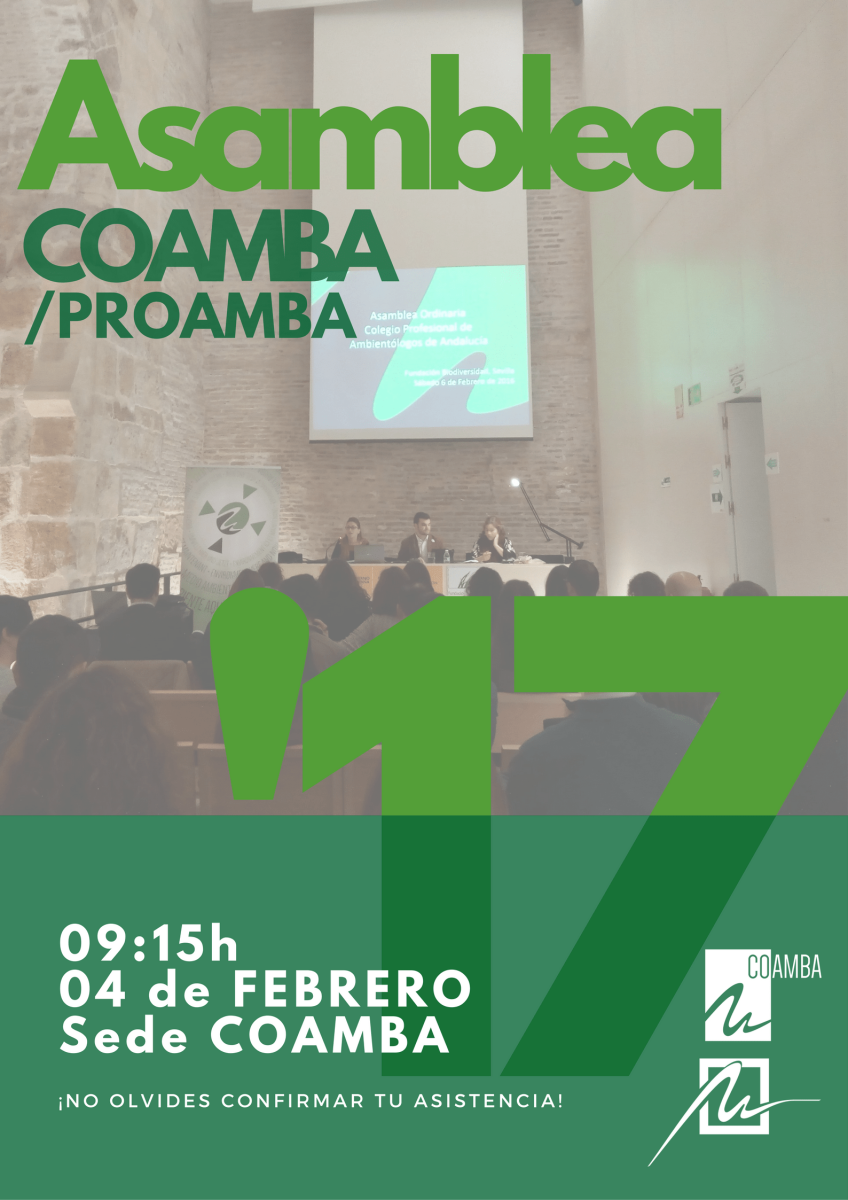 Cumpliéndose lo establecido el Artículo 35 de Organización y funciones de la asamblea general en sesión ordinaria, en el Artículo 37 de Convocatoria de asamblea general de los Estatutos del Colegio Profesional de Ambientólogos de Andalucía, se convoca la Asamblea Ordinaria, en coordinación con la Asamblea ordinaria de PROAMBA.