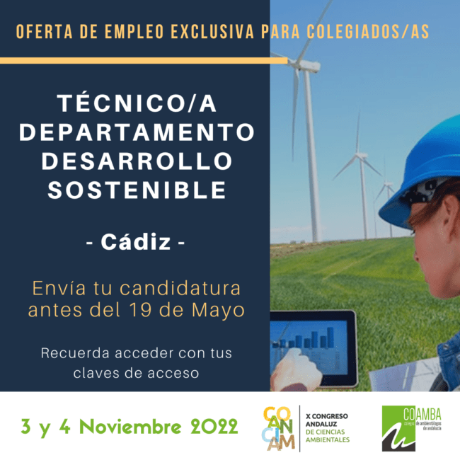Oferta de empleo EXCLUSIVA para colegiados/as 2022_24: Técnico Departamento Desarrollo Sostenible