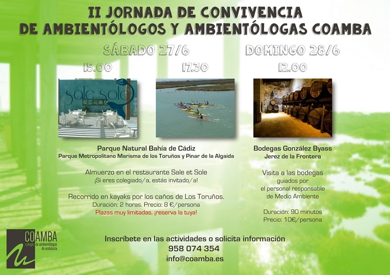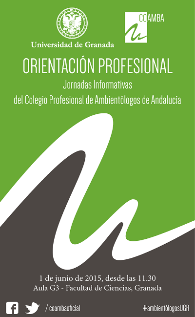 El próximo lunes día 1 de junio se impartirán unas jornadas informativas de orientación organizadas por el Colegio Profesional de Licenciados y Graduados en Ciencias Ambientales de Andalucía en la Facultad de Ciencias de la Universidad de Granada.