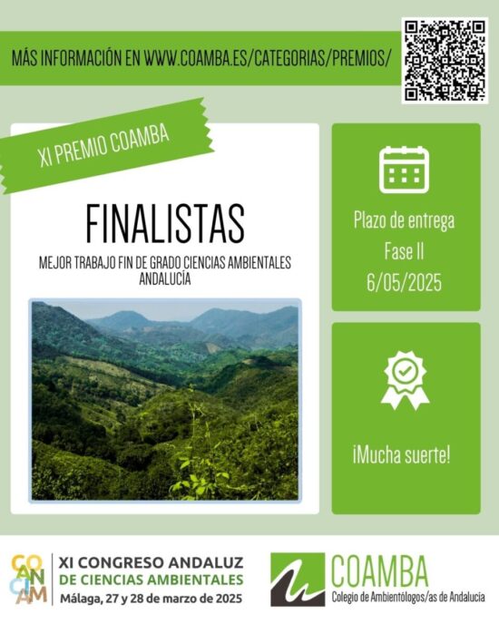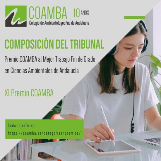 Desde COAMBA tenemos el placer de publicar la Resolución de la XI Edición del Premio al Mejor Trabajo Fin de Grado (TFG) en Ciencias Ambientales de Andalucía.