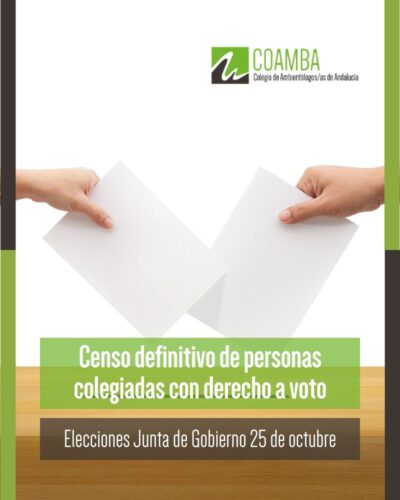 El próximo 25 de octubre celebramos elecciones a la Junta de Gobierno del Colegio Profesional de Licenciados y Graduados en Ciencias Ambientales de Andalucía.