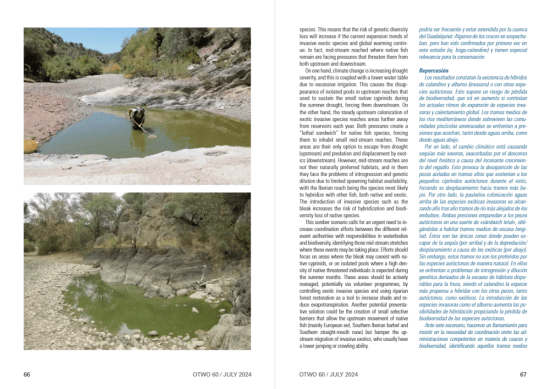 Los resultados constatan la existencia de híbridos de calandino y alburno (invasora) o con otras especies autóctonas. Esto supone un riesgo de pérdida de biodiversidad, que irá en aumento si continúan los actuales ritmos de expansión de especies invasoras y calentamiento global. Los tramos medios de los ríos mediterráneos donde sobreviven las comunidades piscícolas amenazadas se enfrentan a presiones que acechan, tanto desde aguas arriba, como desde aguas abajo.
