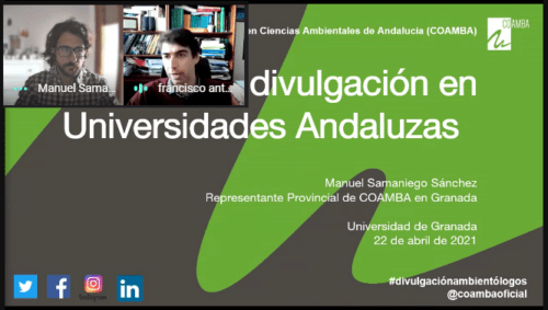 En ambas sesiones ha participado por parte de COAMBA Manuel Samaniego, nuestro Representante en la provincia de Granada y Francisco Serrano Bernardo, Coordinador del Grado en Ciencias Ambientales en la UGR y nuestro Vocal de Docencia e I+D+i.