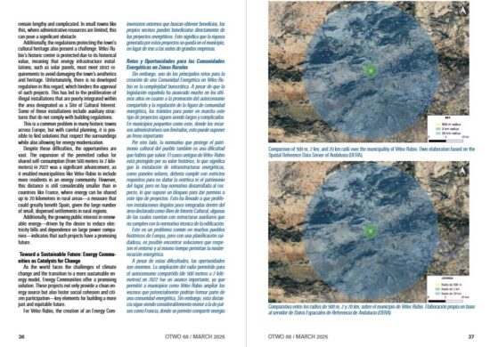 A pesar de estas dificultades, las oportunidades son enormes. La ampliación del radio permitido para el autoconsumo compartido (de 500 metros a 2 kilómetros) en 2022 fue un avance importante, ya que permitió a municipios como Vélez-Rubio ampliar los vecinos que potencialmente podrían formar parte de una comunidad energética,sin embargo, esta distancia sigue siendo considerablemnete menor a la de países como Francia, donde se permite compartir energía hasta 20 kilómetros en zonas rurales, medida que podría ser un desahogo para España, dado el elevado número de núcleos pequeños de caracter diseminado en áreas rurales. Además, el creciente interés de los ciudadanos por las energías renovables, impulsado por el deseo de reducir su factura de la luz y su dependencia de las grandes compañías eléctricas, es un indicativo de que este tipo de proyectos tienen un futuro prometedor.