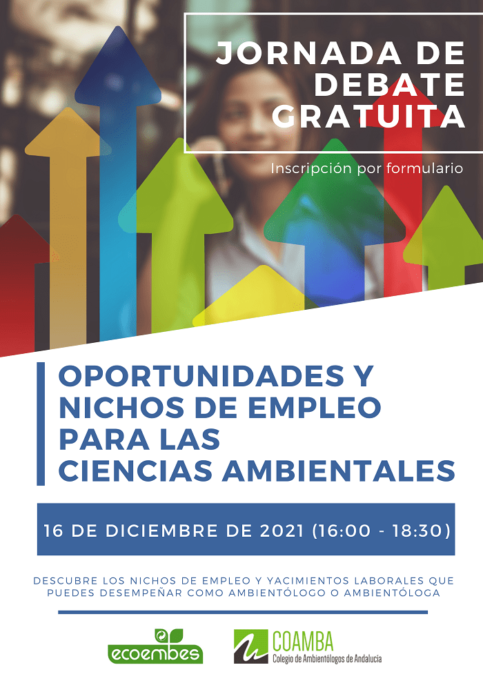 COAMBA organiza junto a Ecoembes esta Jornada de Debate Oportunidades y nichos de empleo para las Ciencias Ambientales, gratuita para todas las personas interesadas en descubrir los nichos de empleo y yacimientos laborales que pueden desempeñar los ambientólogos y las ambientólogas. Datos de interés: