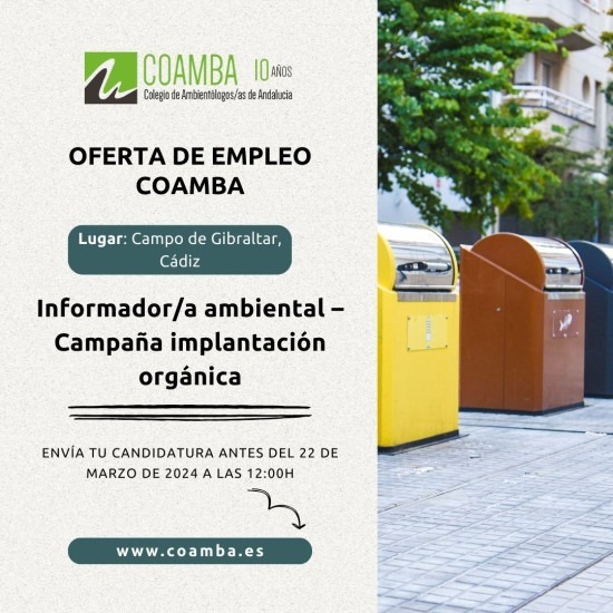 Oferta de empleo para colegiados/as 2024_10: Informador/a ambiental – Campaña implantación orgánica (Campo de Gibraltar)