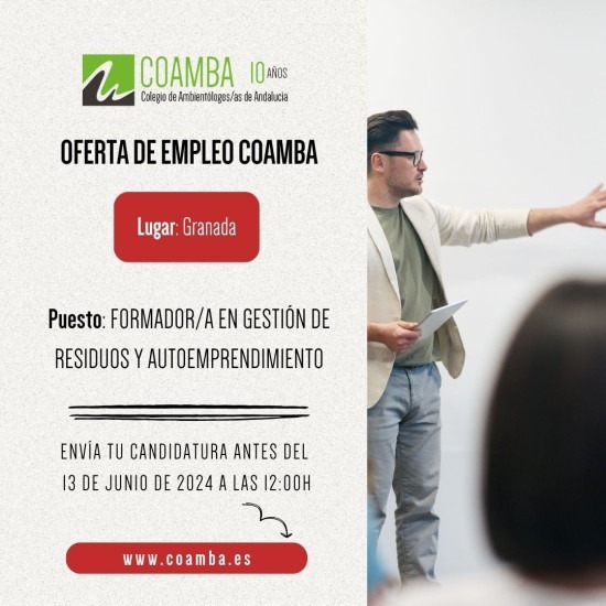 Oferta de empleo para colegiados/as 2024_25: Formador/a en Gestión de Residuos y Autoemprendimiento