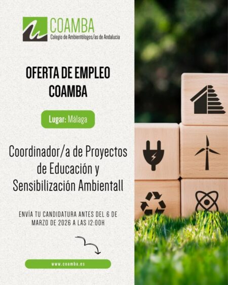 Oferta de empleo para colegiados/as 2026_08: Coordinador/a de Proyectos de Educación y Sensibilización Ambiental