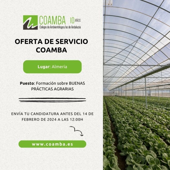 Oferta de servicio para colegiados/as 2024_06: Formación sobre BUENAS PRÁCTICAS AGRARIAS 14 febrero 20248 febrero 2024 Contenido solo para Colegiados/asInicia Sesión para verlo o Colégiate.