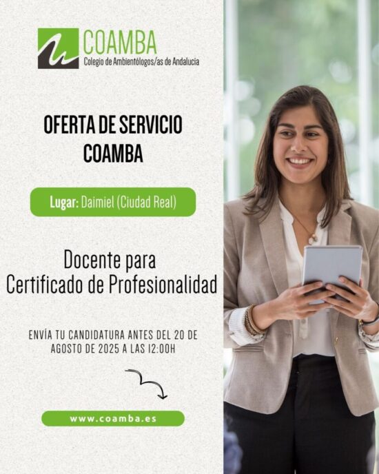 Oferta de servicio para colegiados/as 2025_13: Docente para Certificado de Profesionalidad 4 septiembre 202525 julio 2025 Contenido solo para Colegiados/asInicia Sesión para verlo o Colégiate.