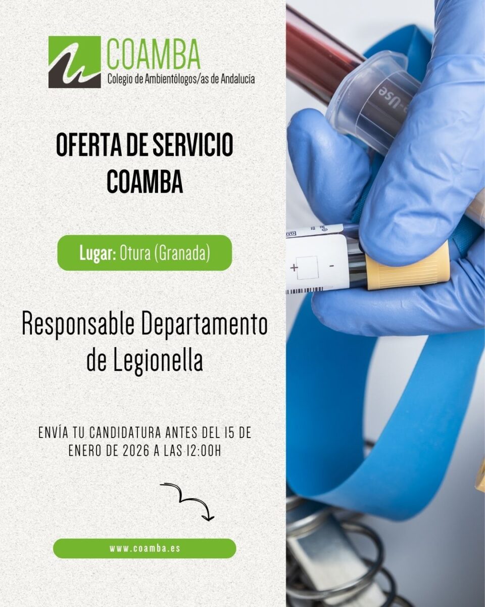 Oferta de servicio para colegiados/as 2025_15: Responsable Departamento de Legionella 15 diciembre 2025 Contenido solo para Colegiados/asInicia Sesión para verlo o Colégiate.