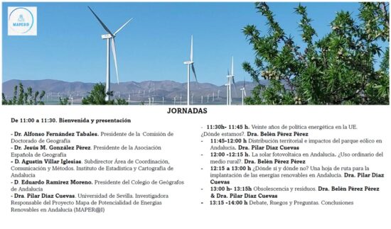 - Dra. Pilar Díaz Cuevas. Universidad de Sevilla. Investigadora Responsable del Proyecto Mapa de Potencialidad de Energías Renovables en Andalucía (MAPER@I).