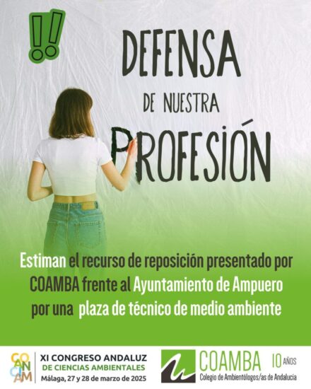 El Colegio Profesional de Ambientólogos y Ambientólogas de Andalucía (COAMBA) ha presentado un recurso de reposición ante el Ayuntamiento de Alhaurín el Grande, denunciando que la reciente convocatoria para la plaza de Técnico Superior–Geógrafo excluye a los/as titulados/as en Ciencias Ambientales.