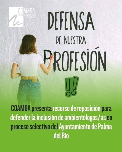 COAMBA presenta recurso de reposición para defender la inclusión de ambientólogos/as en proceso selectivo del Ayuntamiento de Palma del Río