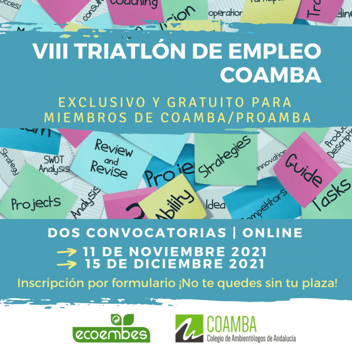 Lanzamos una nueva Edición del Triatlón de Empleo COAMBA, en el marco de la colaboración que mantenemos con Ecoembes desde 2018. Esta actividad es gratuita y exclusiva para personas Colegiadas a COAMBA o Asociadas a PROAMBA. Datos de interés: