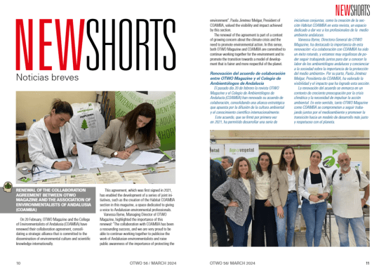 El pasado 20 de febrero la revista Otwo Magazine y COAMBA han renovado su acuerdo de colaboración, consolidando una alianza estratégica que apuesta por la difusión de la cultura ambiental y el conocimiento científico internacionalmente.