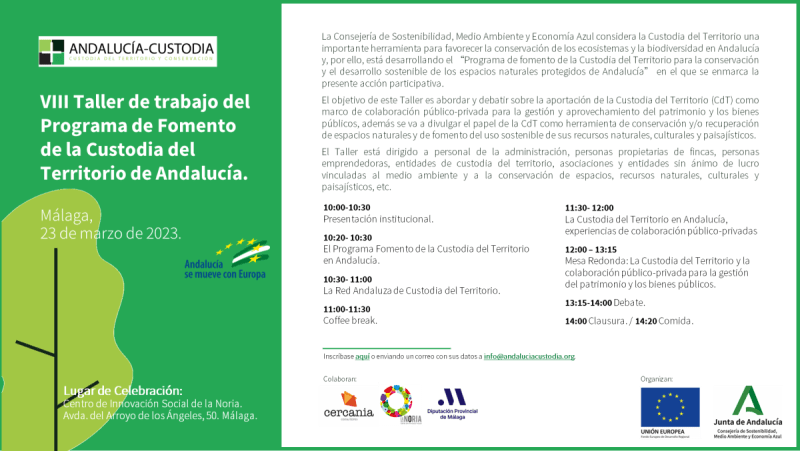 VIII Taller de trabajo del Programa de Fomento de la Custodia del Territorio de Andalucía – Málaga, 23 de marzo